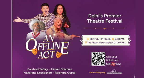 The Offline Act Theatre Festival scheduled for 28th February and 1st March at Select Citywalk, Saket, Delhi, introduces a new festival at a non-traditional venue, in a mall. This special theatre presentation brings together prominent Bollywood and theatre personalities performing powerful live stage plays: The festival is designed to promote live theatre culture and offer audiences a unique Bollywood-on-stage experience with meaningful storytelling and strong performances, that include Darsheel Safary's Aakhri Local, Makrand Deshpande's Piyakkad and Dear Wife, Himani Shivpuri and Rajendra Gupta's - Jeena Isi Ka Naam Hai.
