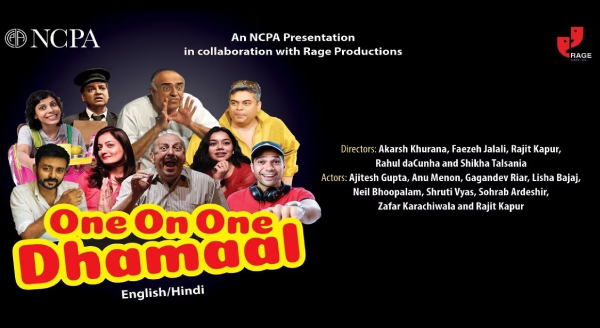 ONE ON ONE is a series of short plays presented by some of the best known names in theatre in Mumbai. The cast and crew ensemble include Rajit Kapur, Shernaz Patel, Rahul Da Cunha, Niel Bhoopalam, Amit Mistry, Sohrab Adershir among others.