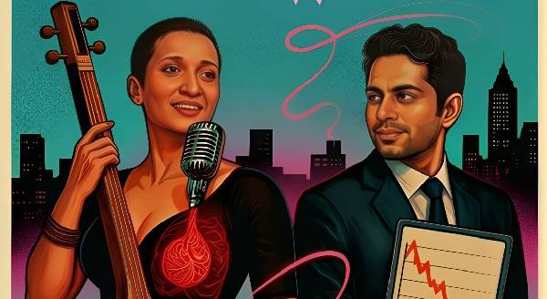 Arun is a stockbroker; Sheila is a semiclassical singer. They live in the same building, though their first “encounter” through the intercom is anything but pleasant. Every morning at 5 AM, Sheila’s riyaz echoes through the walls, robbing Arun of sleep. Irritated and exhausted he calls Sheila on her intercom but she shuts him up by calling him an uncultured non-musical person . He finally complains to his broker and even considers changing apartments. Meanwhile, fate plays a different game. Arun and Sheila match on a dating app and instantly hit it off. Unaware of each other’s identities, they fall into an easy, surprising connection. One evening, Sheila invites Arun to her music show. After the performance, while dropping her home, Arun suddenly realizes the truth-"this is the same Sheila whose early-morning riyaz has been torturing his sleep. But by then, it’s too late. He is already enchanted-"by her warmth, her presence, and most of all, her singing. When Sheila discovers that Arun is the grumpy neighbour disturbed by her practice sessions, she simply smiles and forgives him.