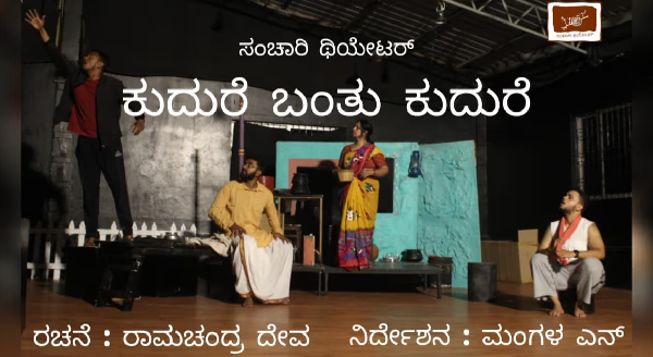 KUDURE BANTHU KUDUDRE is a play written by Ramachandra Deva. Kudure (a horse) is used as a metaphor to portray a human being's dreams and ambitions. Every individual aspires to fulfill their dreams and ambitions. Similarly all the characters in this play also have their shares of dreams and ambitions. They are constantly trying to escape their reality by chasing their dreams. Do they fulfill their dreams? Are they successful in making their ambitions come true? Or do they remain stuck between their dreams and their reality? Do they hit reality pretty hard? While the characters are all dreaming to create a new life, there is always a reminder about destruction. Irrespective of this very reminder the characters continue to dream. What keeps a human's soul active and alive? Dreams, isn't it. Kudure Banthu Kudure portrays this very conflict between reality and dreams.