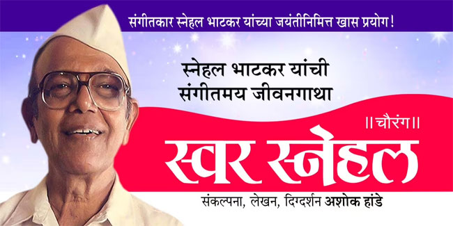 Swarsnehal is a tale of Snehal Bhatkar's biography blended with his own songs and video clippings along with live band, sound, lights and a huge set. The program is performed by high quality professional artists.