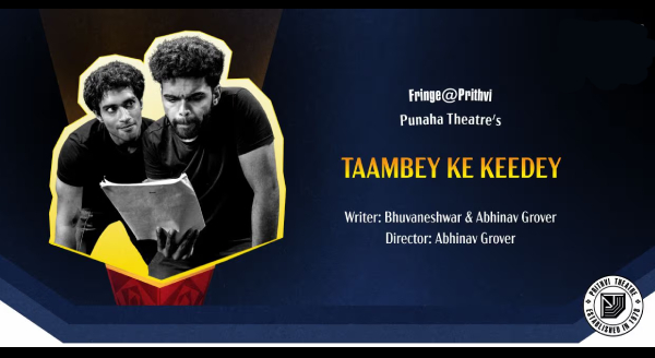 TAAMBEY KE KEEDEY is an adaptation by Abhinav Grover of a play written originally by Bhuvaneshwar Prasad in pre-Independence era. The play is written with an aim to make the audience think while not having a plot or a story. The intention, to some extent, is to not get confined by rules and established structure. The play is brought together by Punaha Theatre and Abhyaas Theatre.