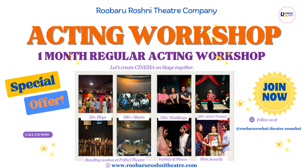 Join our 1-Month Regular Acting Workshop at Roobaru Roshni - a modern theatre company with powerful, creative, technique-based training..