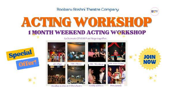 Join our 1 Month Regular Acting Workshop (21st March - 19th April) and explore acting through body language, voice training, improvisation, character building, and scene work